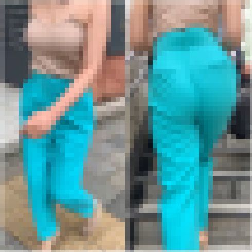 発色の良いエメラルドグリーンのパンツを履き一際注目を浴びるセレブ。