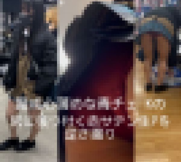 書店でM字開脚で地べたに置いてある商品を見てる青チェ Kを発見。