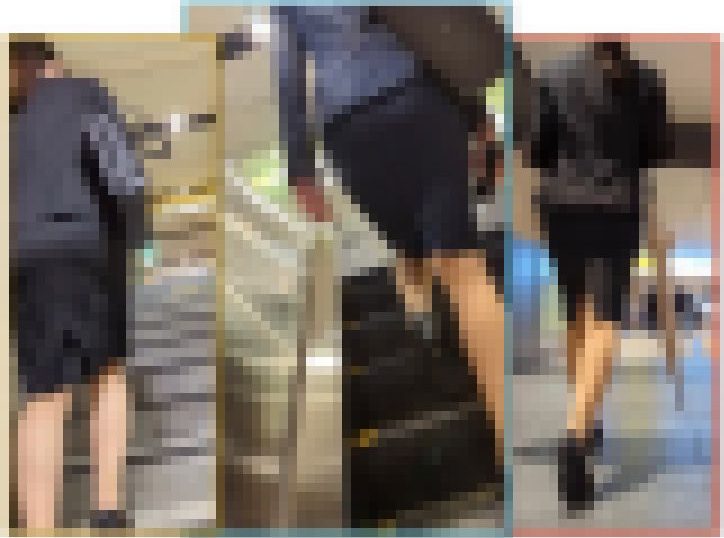 3. いきなり階段登りドアップからスタート。周りにも複数のスーツOLが歩行しており、悩ましい空間です。中でも一番グッときたリクスーを追います。歩行シーンにて改めてスタイルの良さに惚れ惚れしつつ、スリットからのぞく白い美脚も堪能できます。階段登り、歩行シーン、エスカレーターのシーンちょっと。