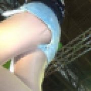 ・当初、モニターに映った、ステージの3人ちゃんの逆さ撮り映像(「パンチラ生中継中」の張り紙あり)の“もらい撮り”に甘んじていた“チアフェチ”さんですが、矢も盾もたまらず、ステージ脇へと決死の突進(中略)、見事、セーラー服ちゃんのしゃがみ&逆さ▼地帯をget.