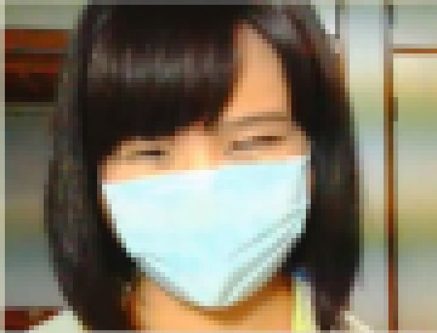 既に全裸にマスク姿の彼女、早速指を2本挿入し顔をしかめながら中をこねくり回しています。